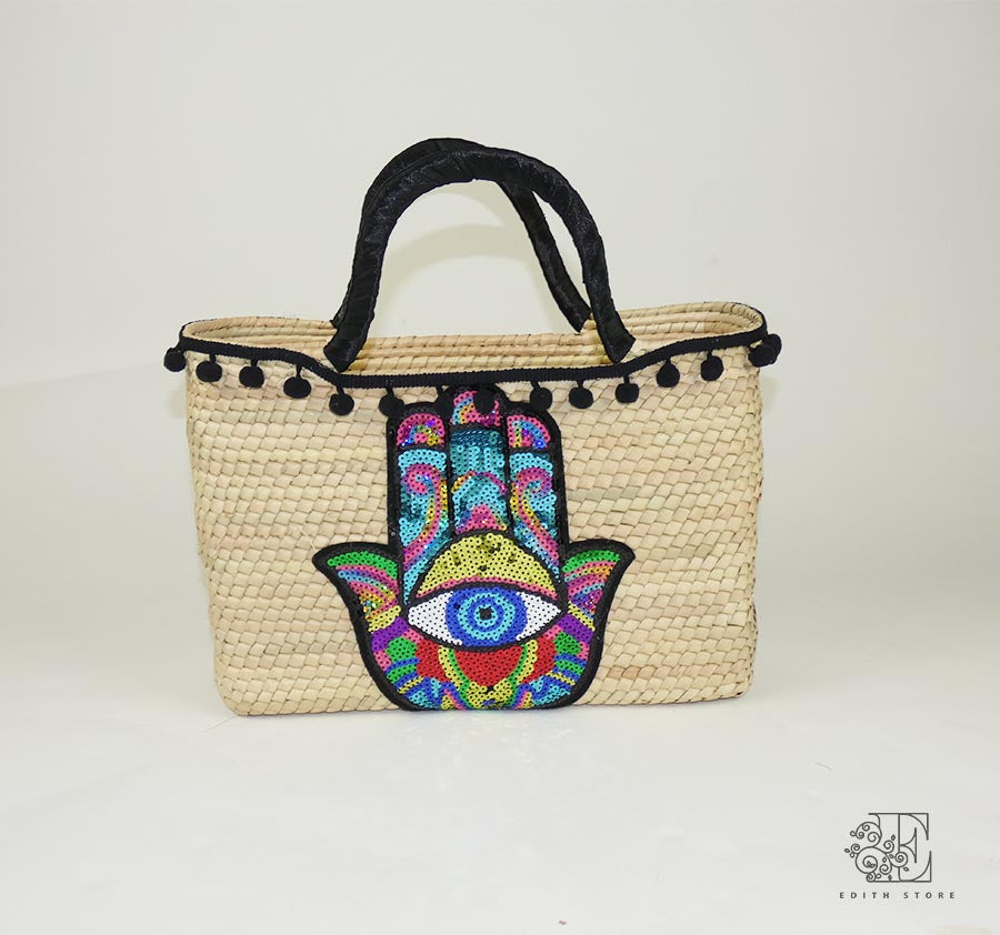 Beautifully handcrafted palm leaf bags, decorated handmade by Mexican artisans.